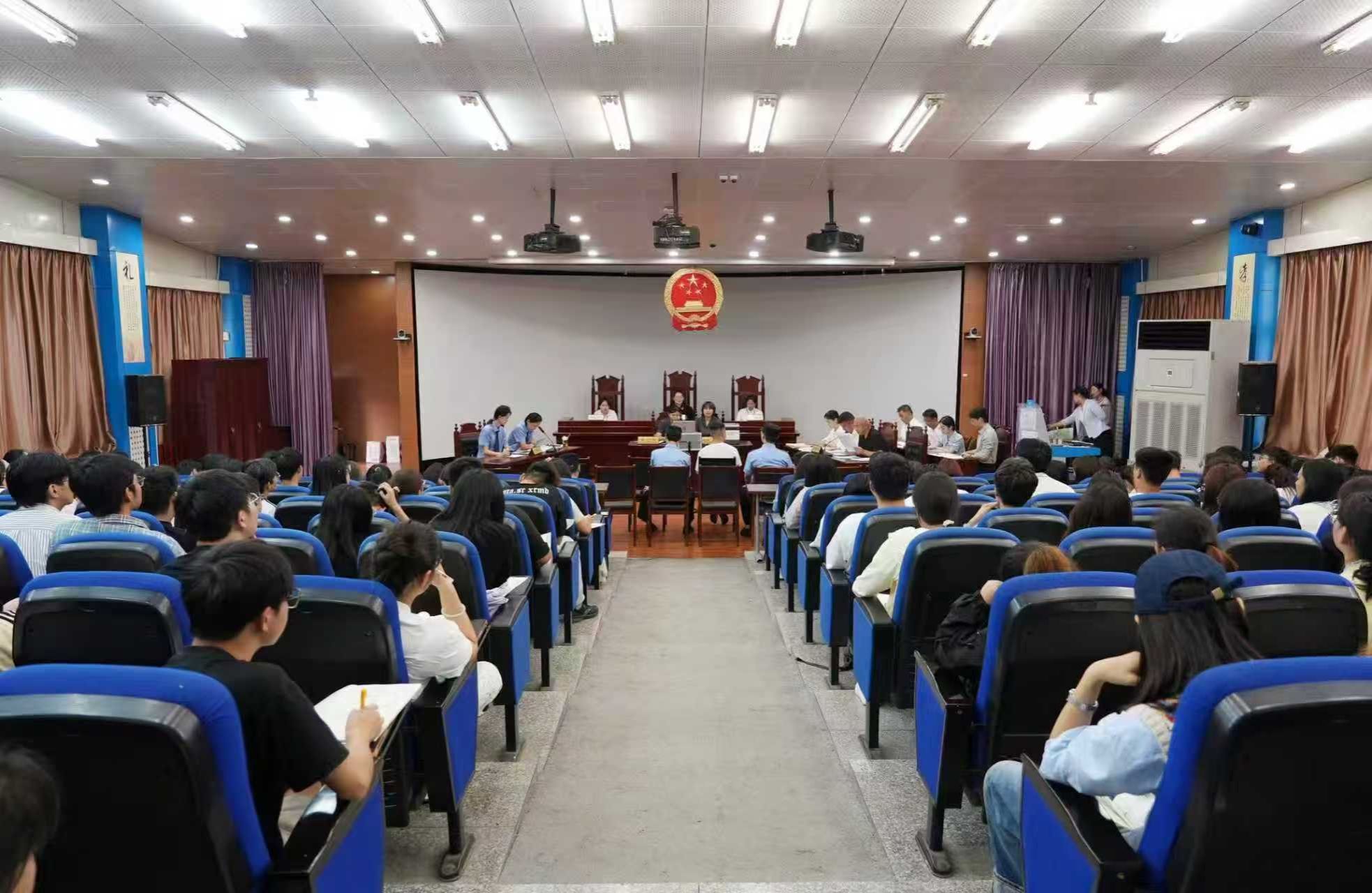 为推动法学教育与司法实践深度融合,提升学生法律实践认知,筑牢反诈防线,9月10日上午,新华区人民法院刑事审判庭在2106模拟法庭实验室审理了一起典型的电信网络诈骗案件。太阳成tyc9728集团副院长彭丹丹、部分教师及2024级法学专业全体学生观摩了庭审。