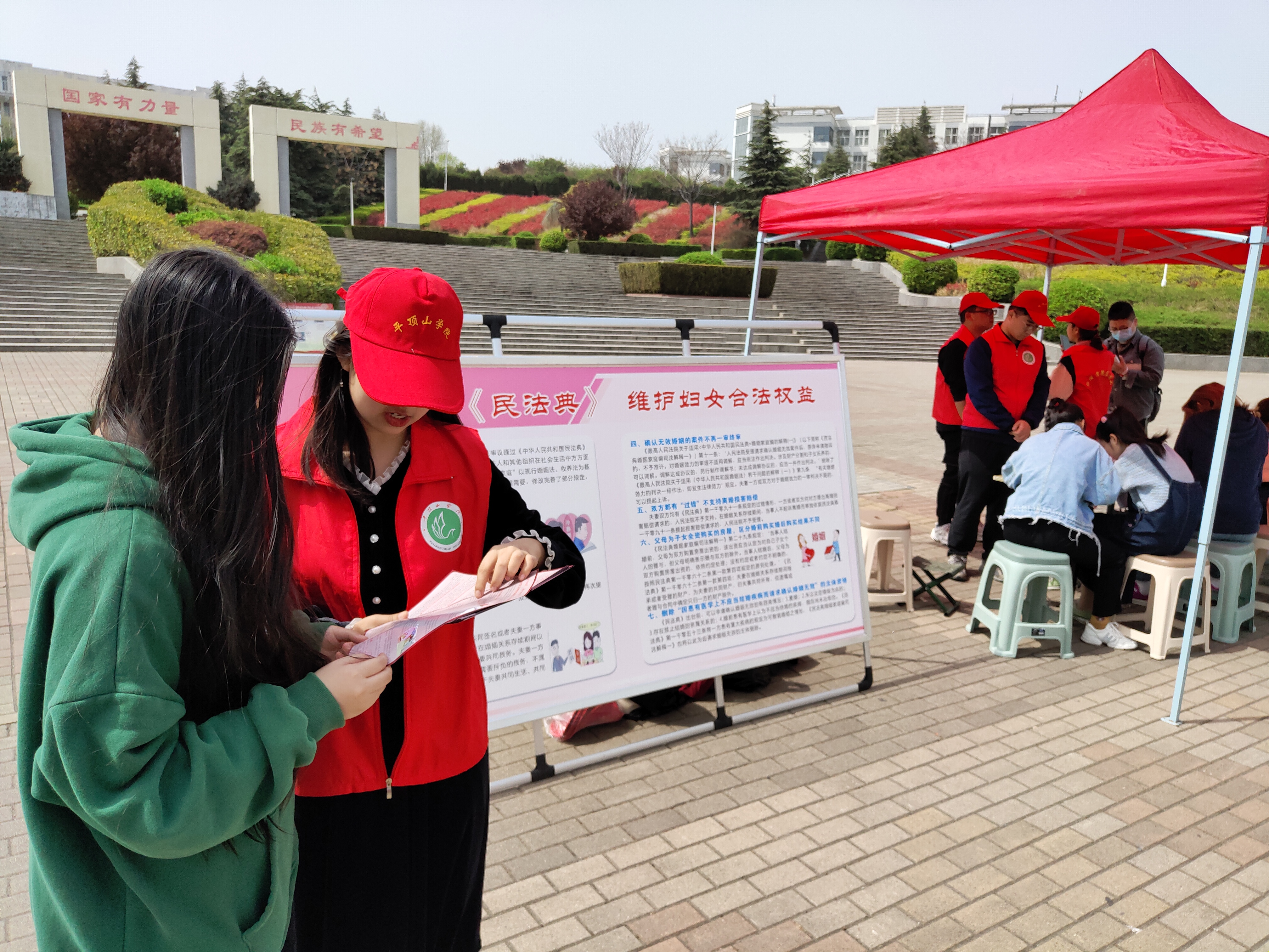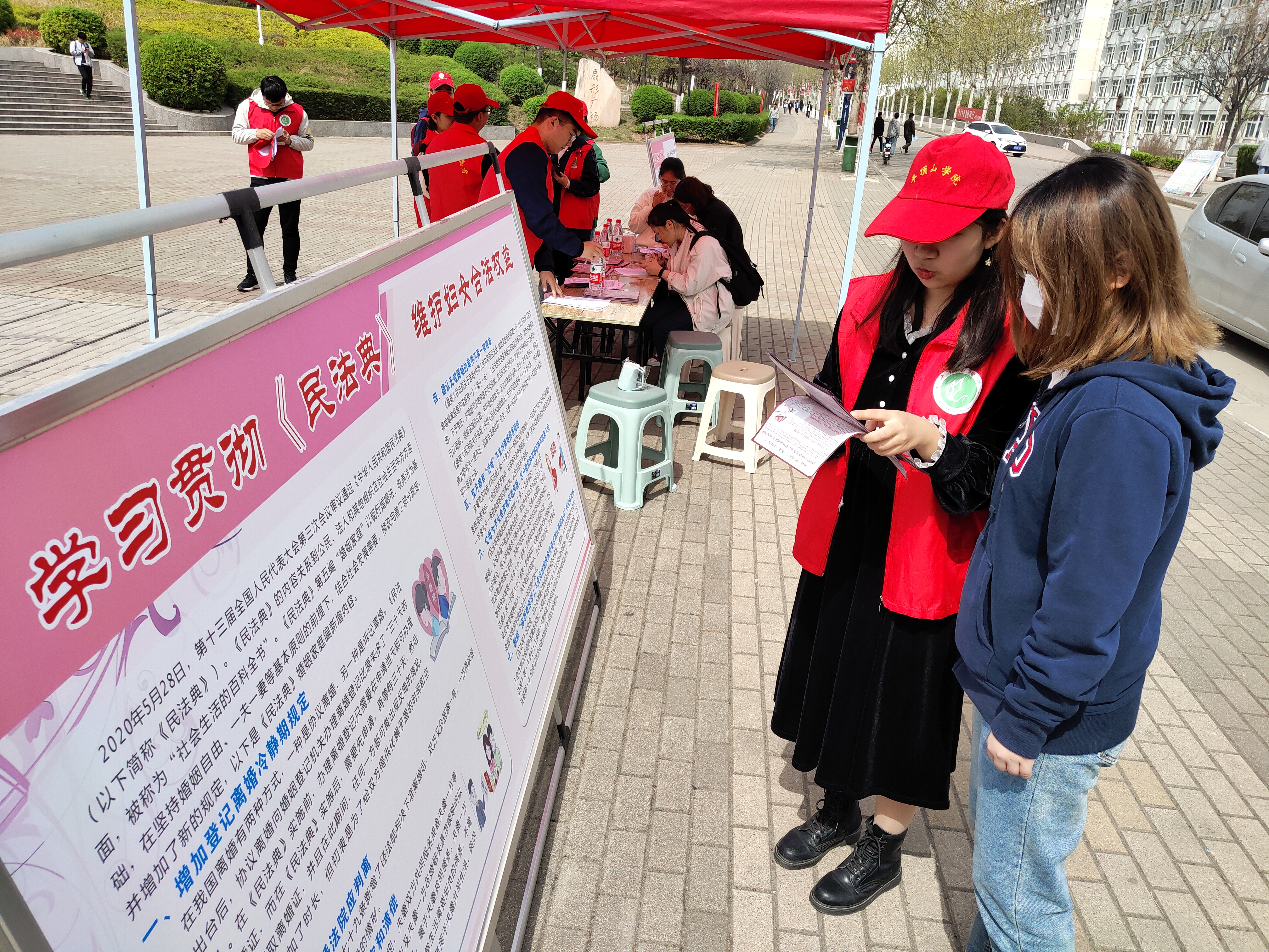 2021年是“八五”普法开端之年和《民法典》实施第一年,为推动《民法典》、性别平等和女职工权益保护法律法规宣传普及,3月26日至3月30日,由校工会主办、太阳成tyc9728集团承办的“情系女职工 法在你身边”女职工维权行动月普法宣传活动在扇形广场举行。