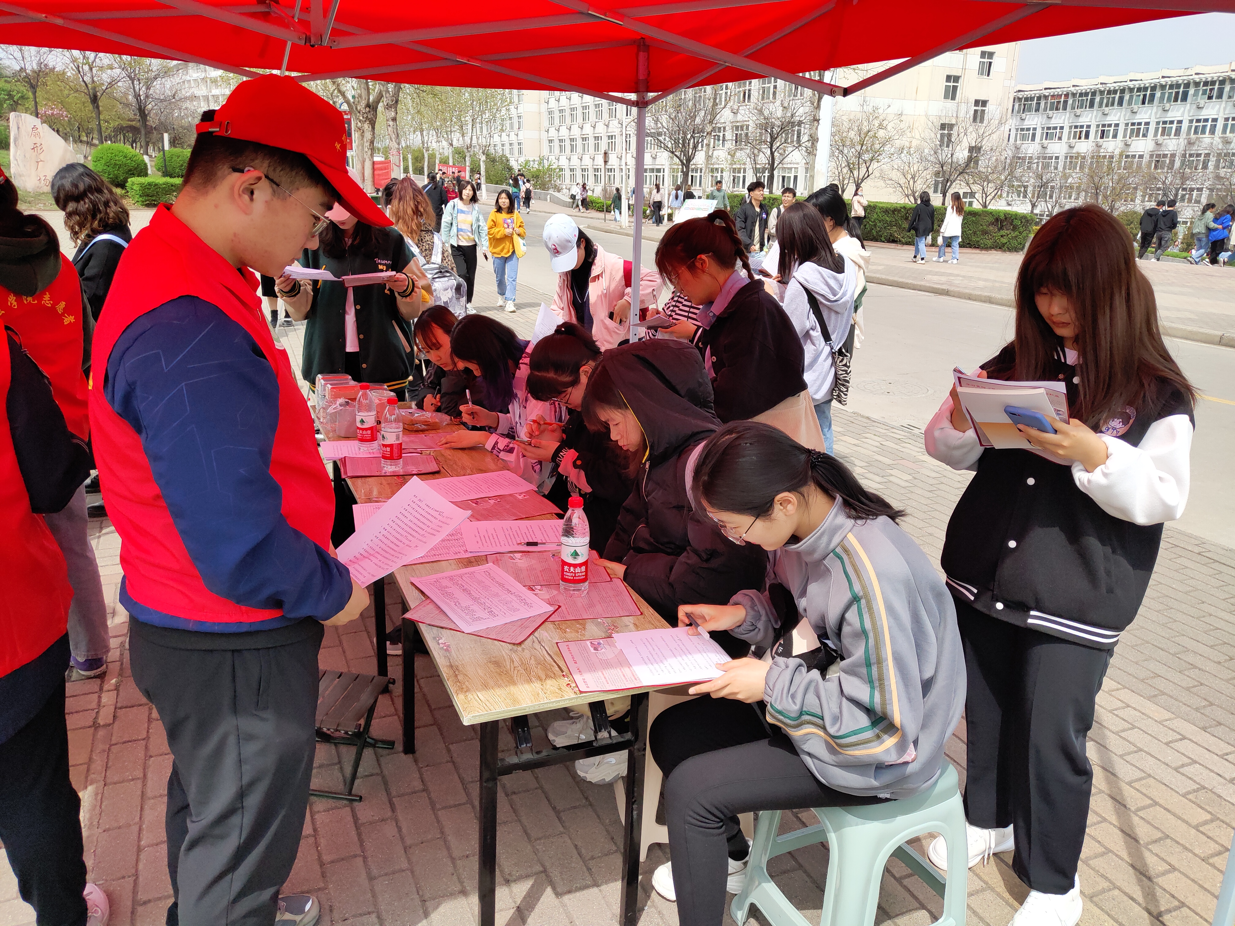 活动现场,志愿者通过发放宣传资料、知识宣讲、现场咨询解答等方式,向学校女教工及女生普及妇女权益保护等相关法律知识。重点宣传《民法典》、《河南省女职工劳动特别保护规定》等法律法规,引导广大女性同胞学法、尊法、守法、用法,增强依法维权意识,树立遇事找法、靠法的理念,学会利用法律武器维护自身合法权益。其中,志愿者详细介绍了什么是《河南省女职工劳动特别保护规定》,并对大家普遍比较关心的有关女性职工权益纠纷等问题进行了现场咨询解答。此外,活动还设计了有奖答题环节,使大家在轻松愉快的答题过程中,有效学习了女职工权益保障方面的法律知识。